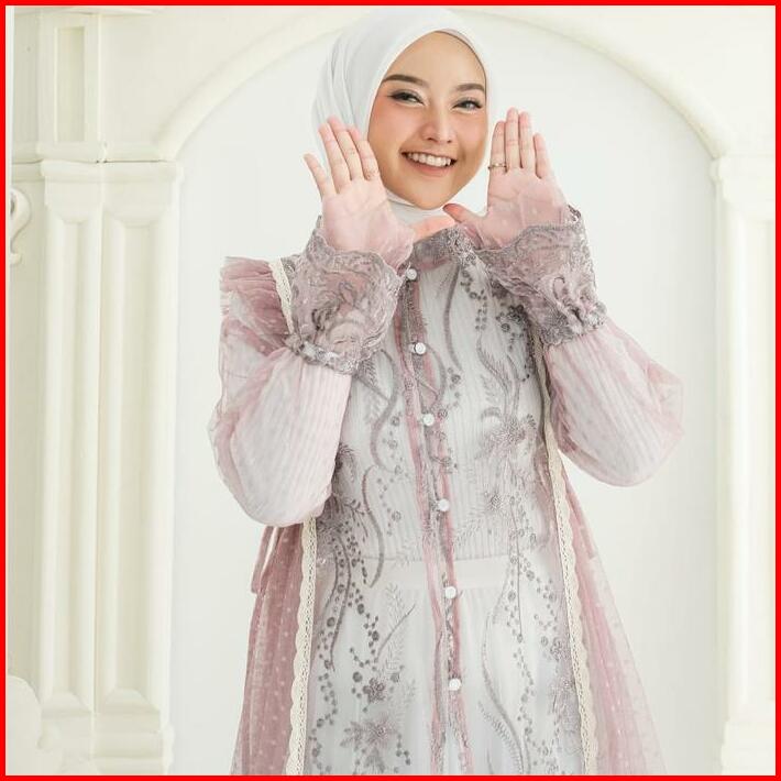 Flora Brokat Outer Brukat Mewah 2025 Simple Elegant Kardigan Baju Muslim Kondangan Basic Atasan Tunik Remaja Dewasa Card
