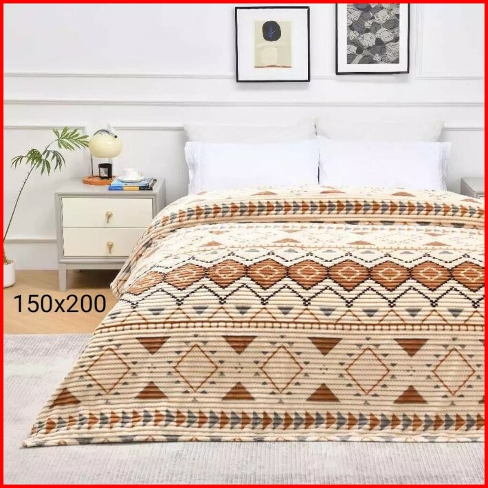 Special Unique Bohemian Selimut Bulu Halus Salur Printing 150cmx200cm