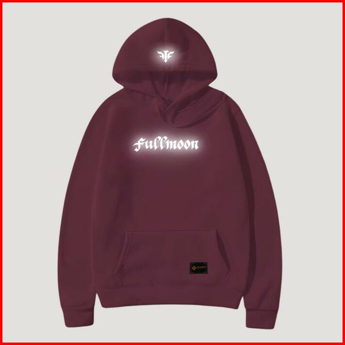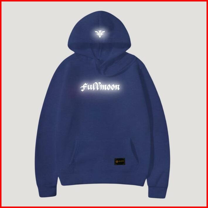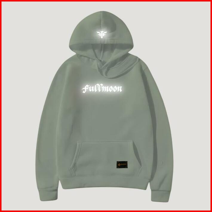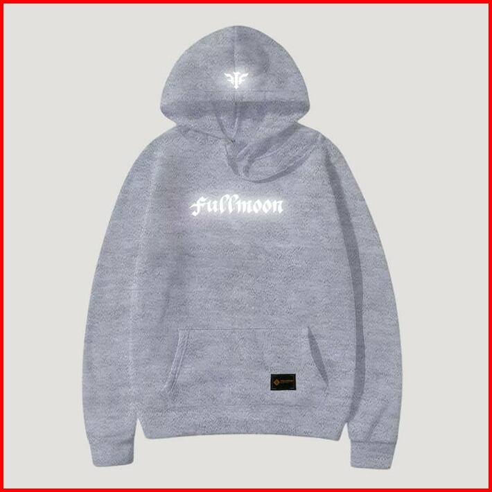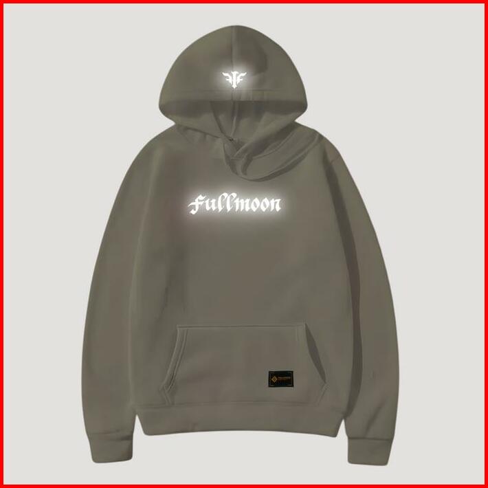 Fullmoon Hoodie Jumper Menyala Reflective Fleece Tebal 280gsm Unisex Pria Dan Wanita