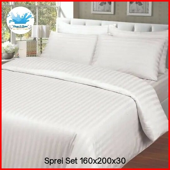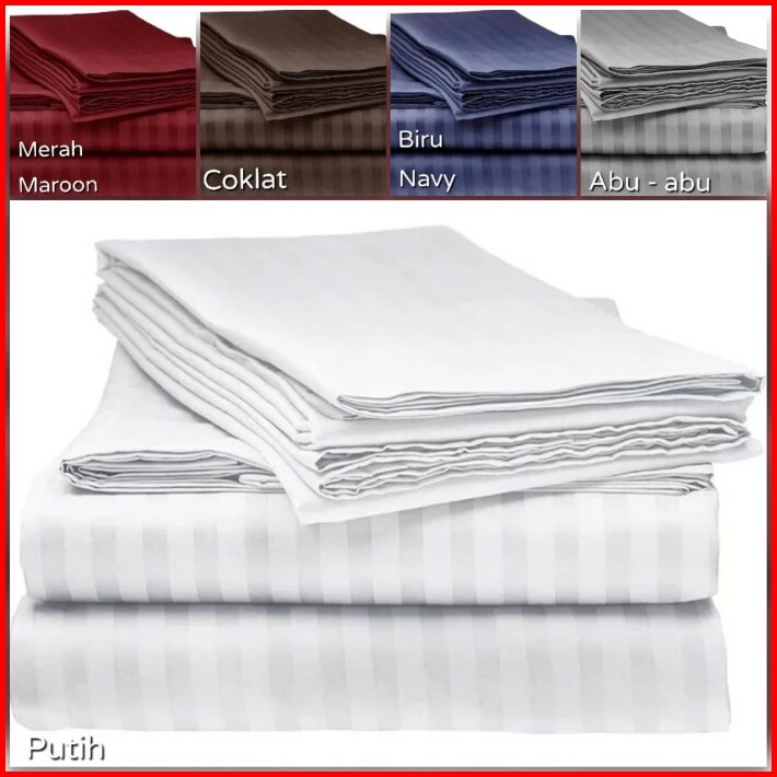 Sprei Hotel 160x200x30 Putih Salur Stripe 100 Cotton Microfitted Set