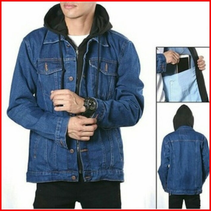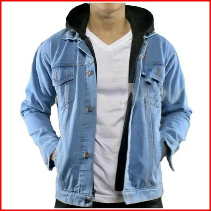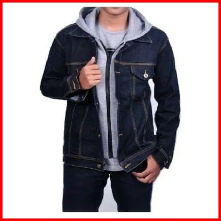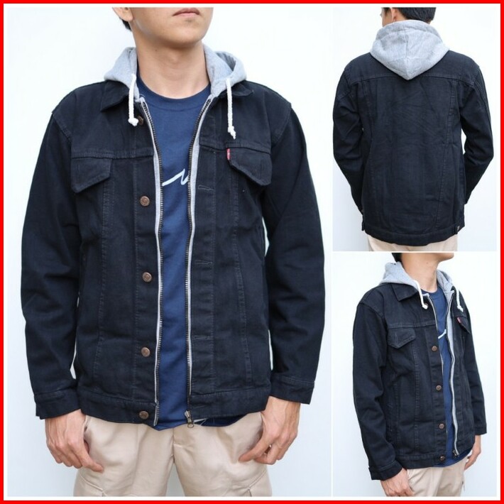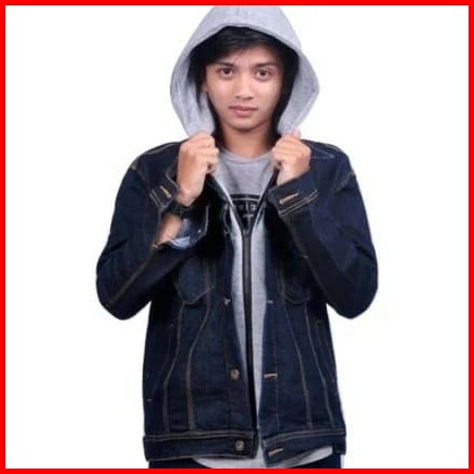 Jaket Jeans Denim Casual Pria Hoodie Aril Kombinasi Abu