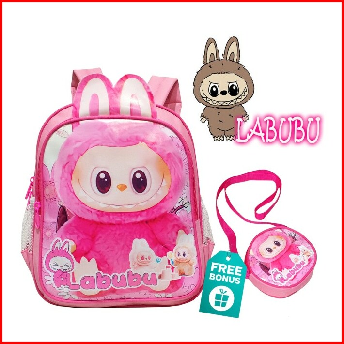 Tas Ransel Labubu Tas Anak Perempuan Sekolah Paud Tk Sd Tas Ransel 2 In 1 Karakter Labubu Free Tas Slempang Bulat