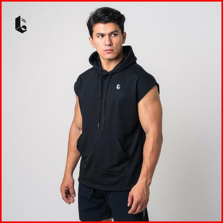 Lockerwear Hoodie Singlet Sport Sleeveless Olahraga Pria Gym Fitness Boxing Tinju Workout Casual Loose Fit