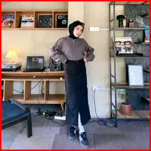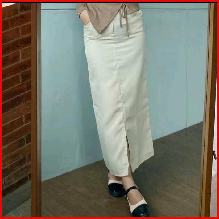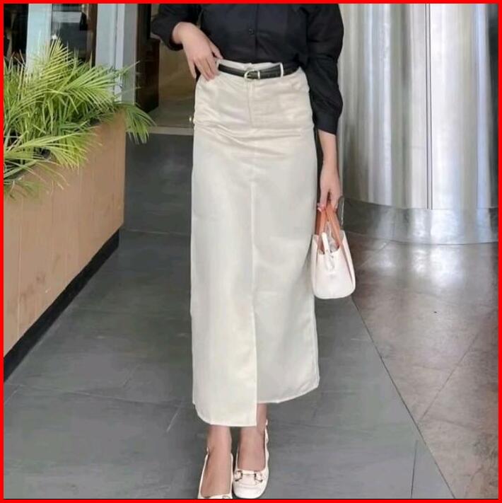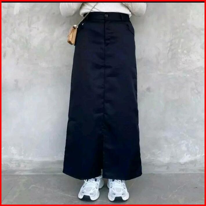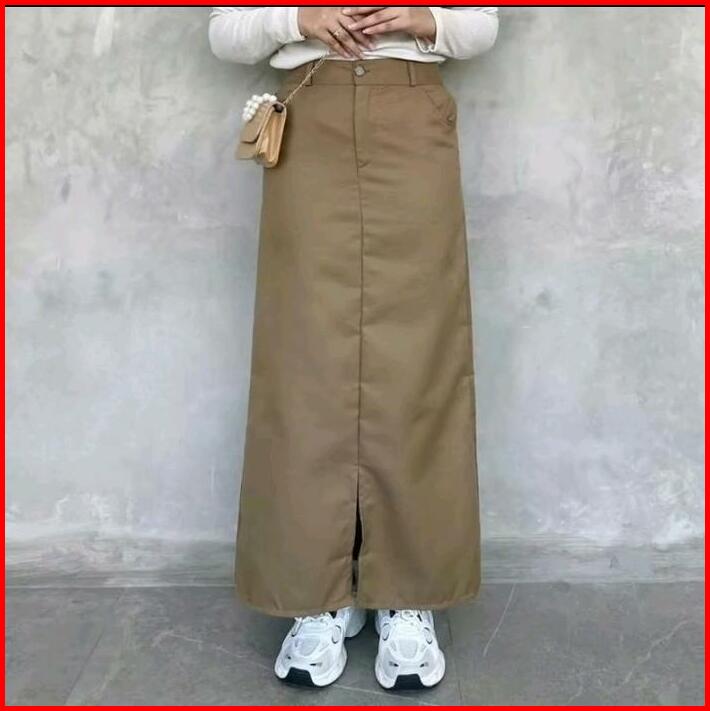 Rok Sepan Basic Katun Drill Kancing Nyaman Wanita Formal Cantik Panjang Dan Tebal Span Standar Simple