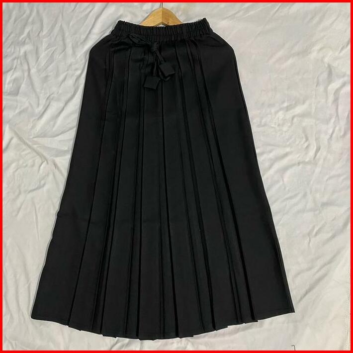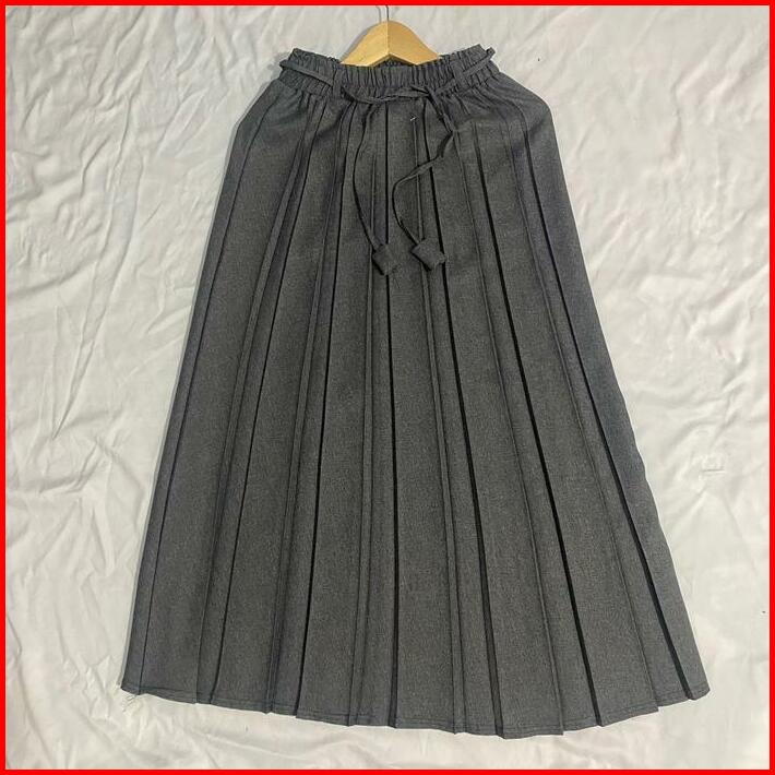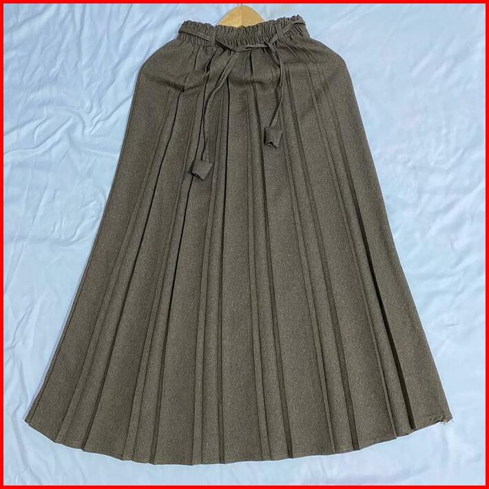 Rok Kerja Plisket Pinggang Karet Rempel Besar Premium Inport Bahan Semi Woll Kain Panjang Tebal Wanita