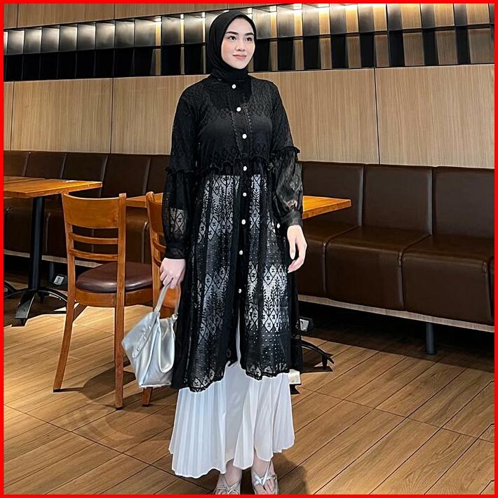 Zile Outer Brukat Cardigan Brokat Lengan Panjang Atasan Outher Brukat Outer Brokat Outer Tulle Outer Organza Outer Renda