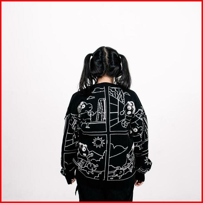 Symposia Cardigan Knit Wear Comic Panjang Knitwear Outer Sweater Casual
