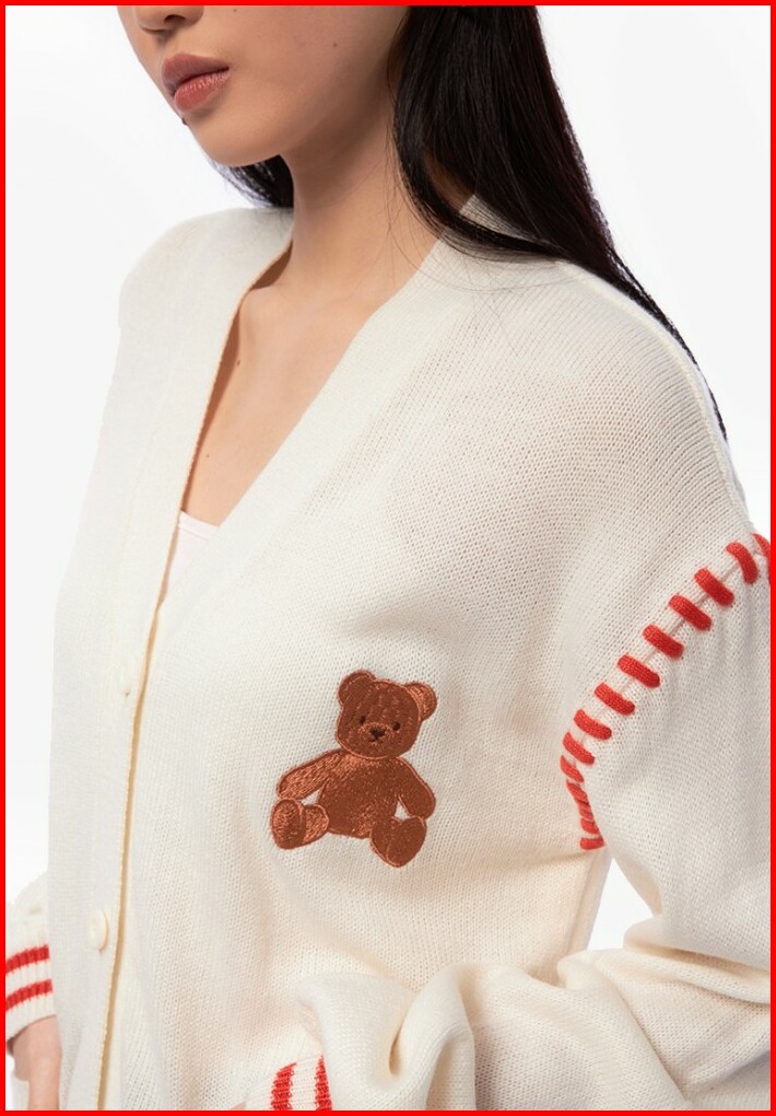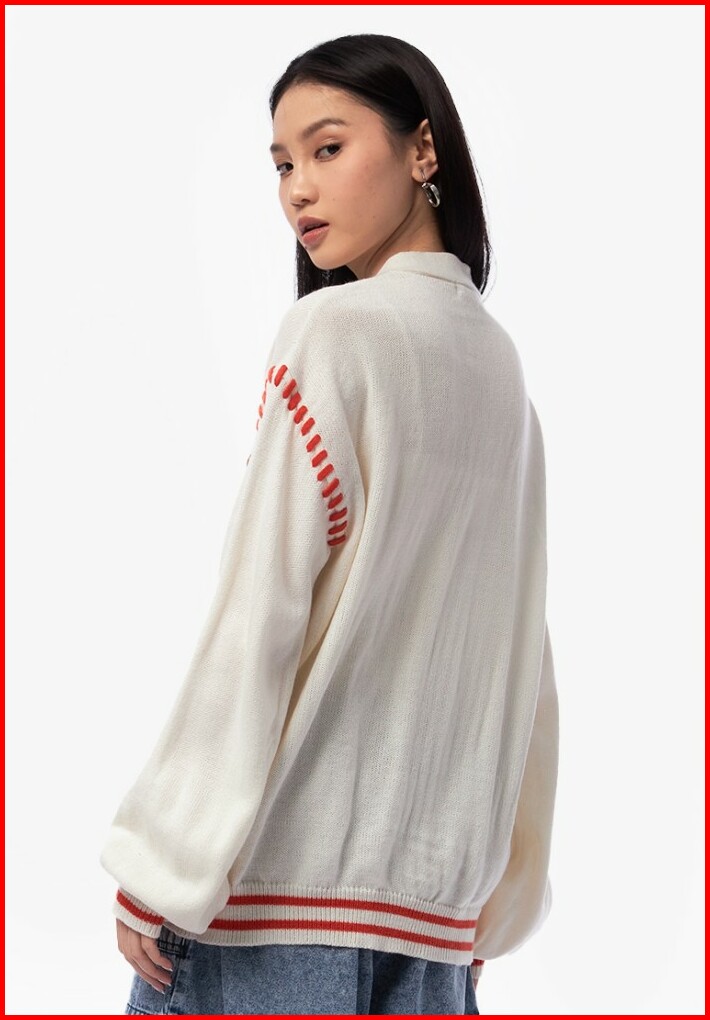 Colorbox Contrast Stitch Cardigan I-cogkey224h082 Ecru