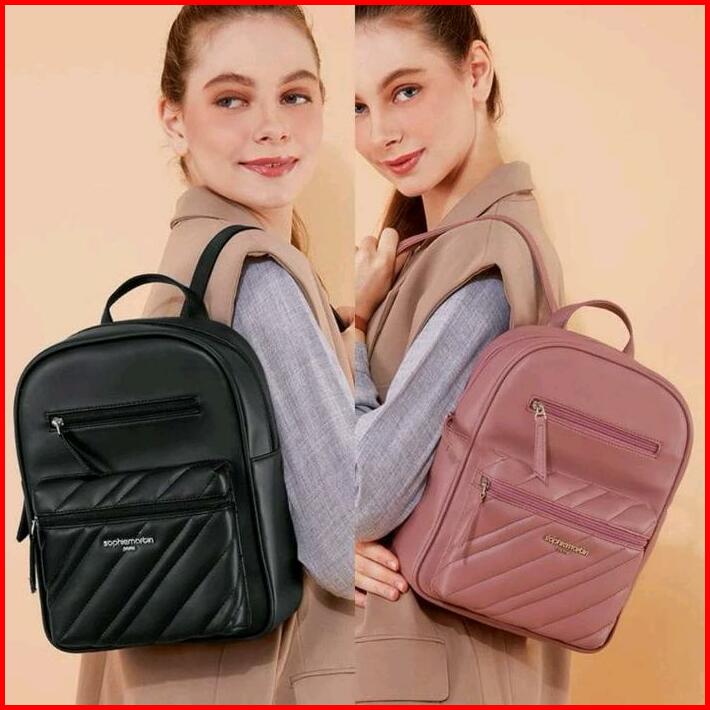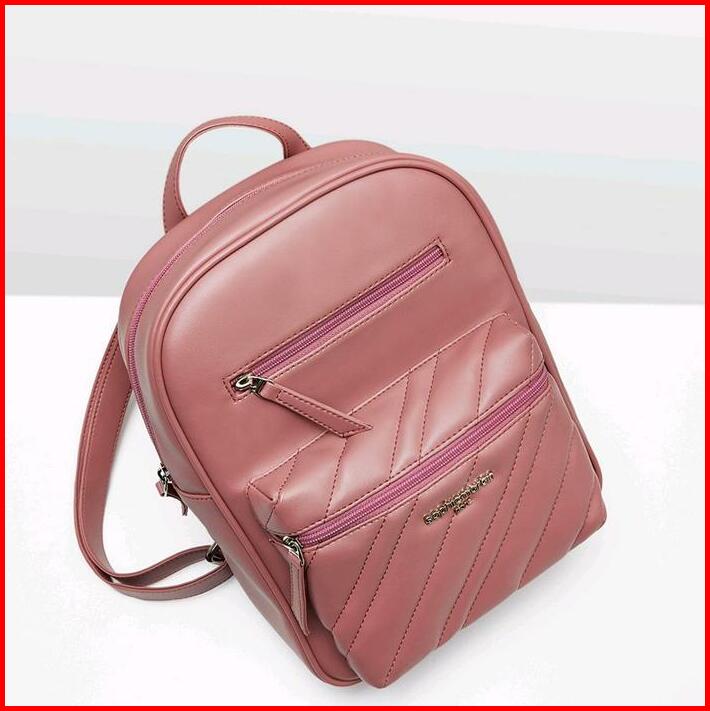 Sophie Martin Capriolla Tas Punggung Wanita Ransel Backpack Hitam Kulit Pu Polos Setrip Pink