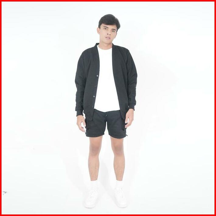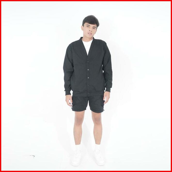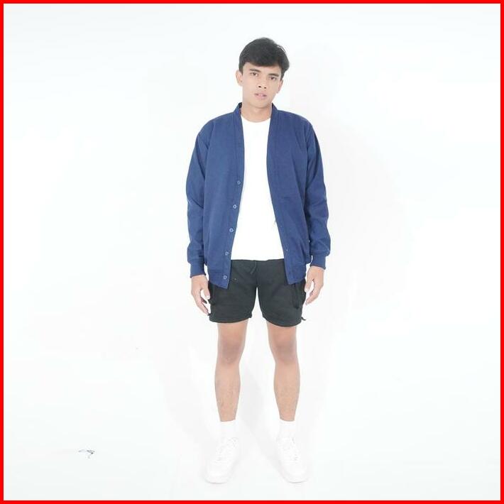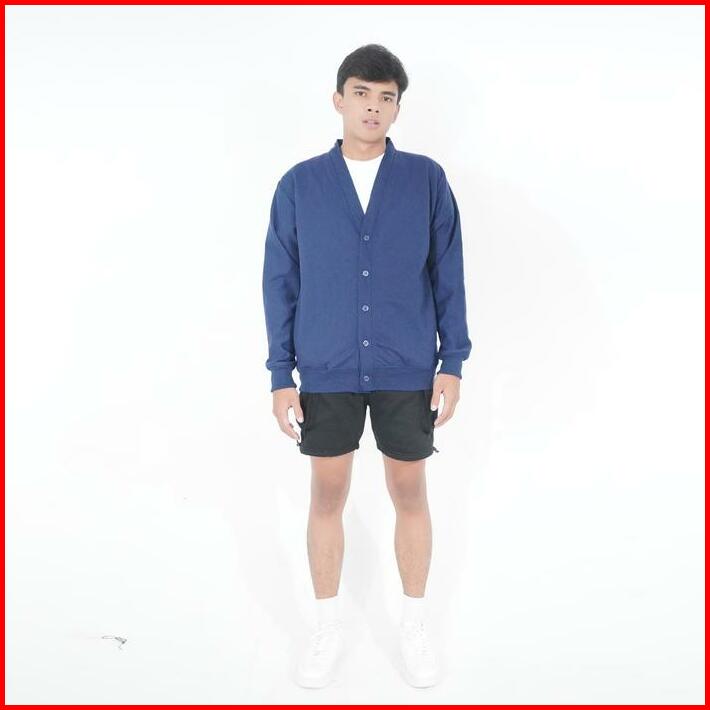 House Of Cuff Cardigan Pria Trendi Size L-xxl Hitam Kerah Panjang Navy Sweater