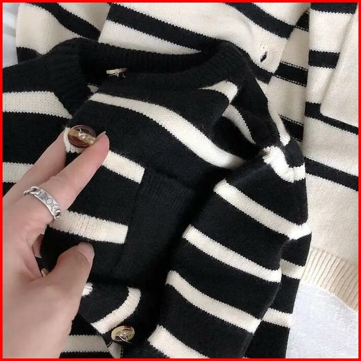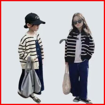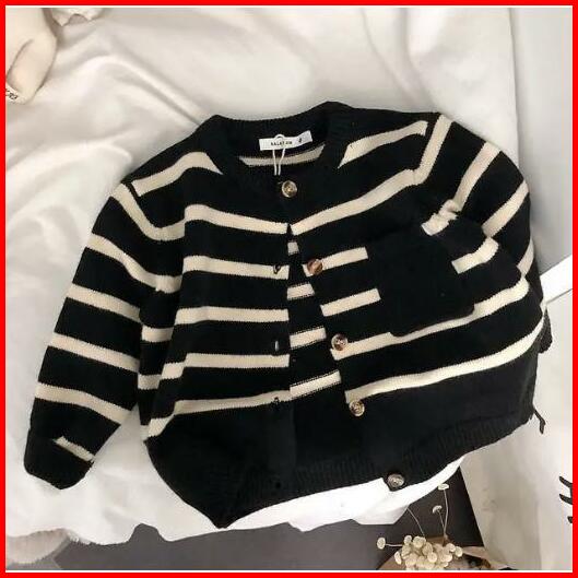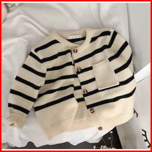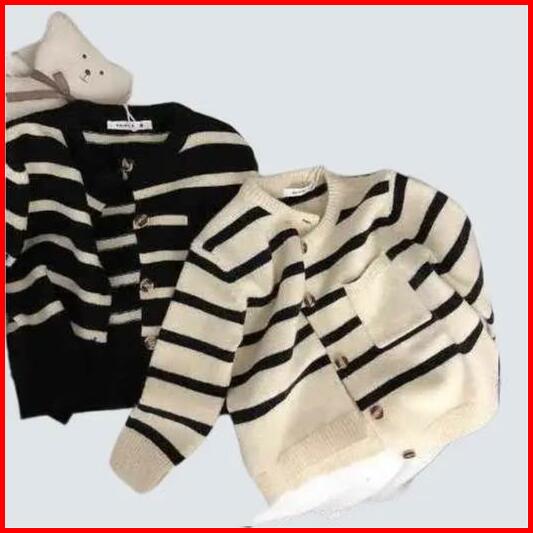 Cardigan Girls Sweaters Children S Soft New Knit Child Classic Striped Round Neck Sweatshirt Toddler Merah Lengan Bayi