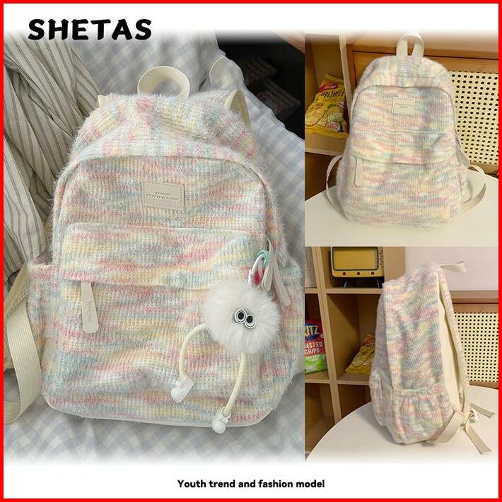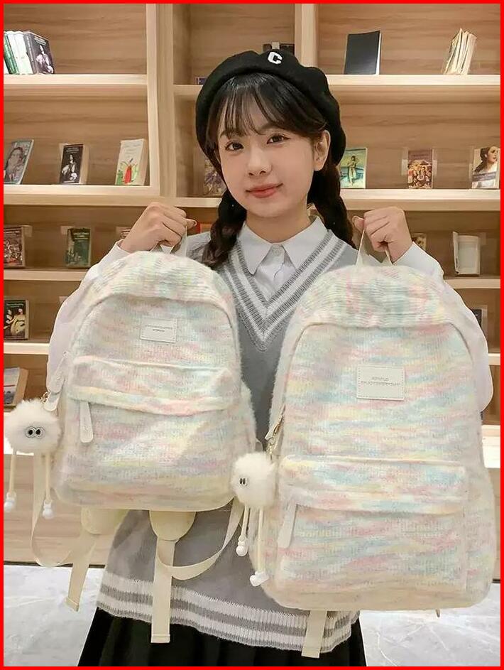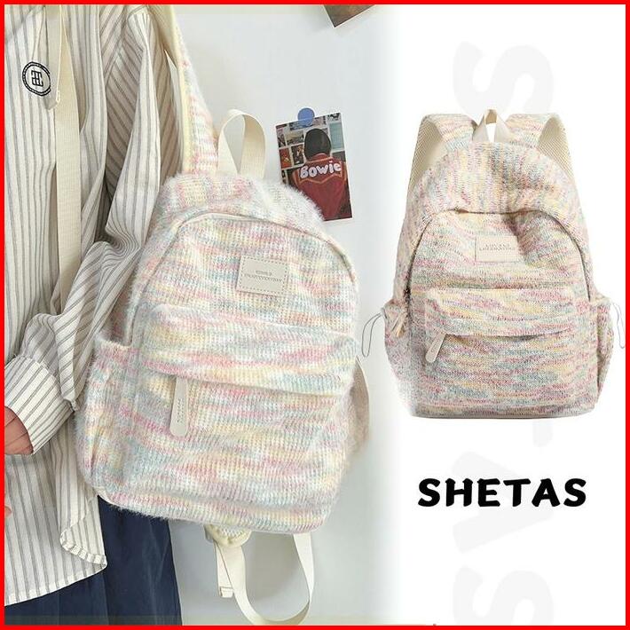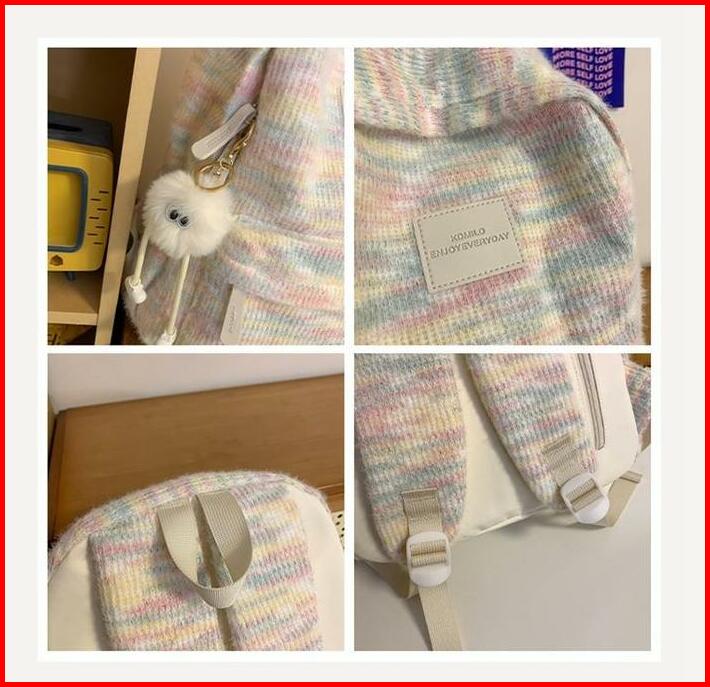 Pelangi Mewah Rajutan Tas Ransel Mini Tas Travelling Wanita Ransel Lucu Mini Backpack Y2k Ransel Wanita Premium Backpack