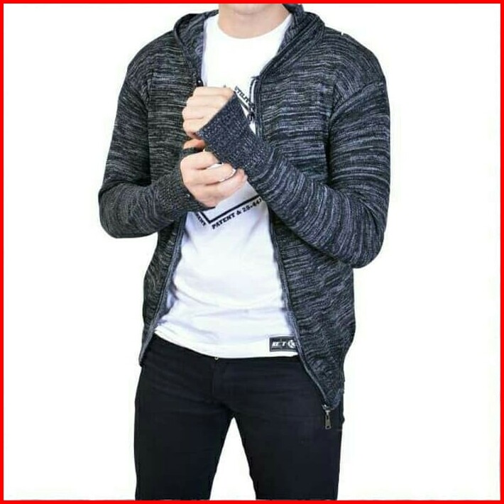 Jaket Sweater Rajut Cardigan Finger Polos Ariel Noah Twotone Rajut