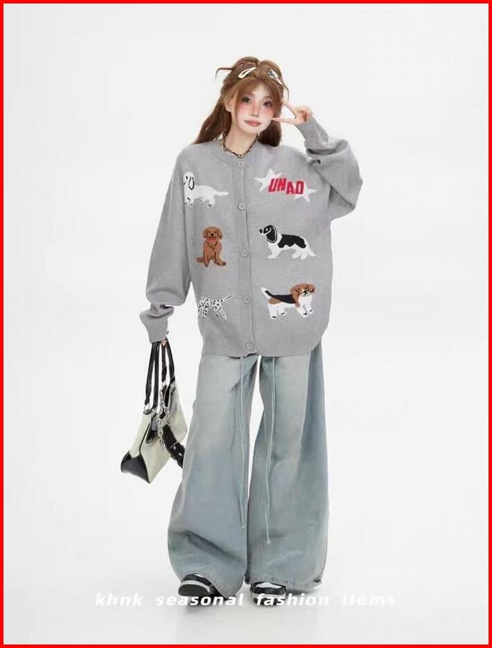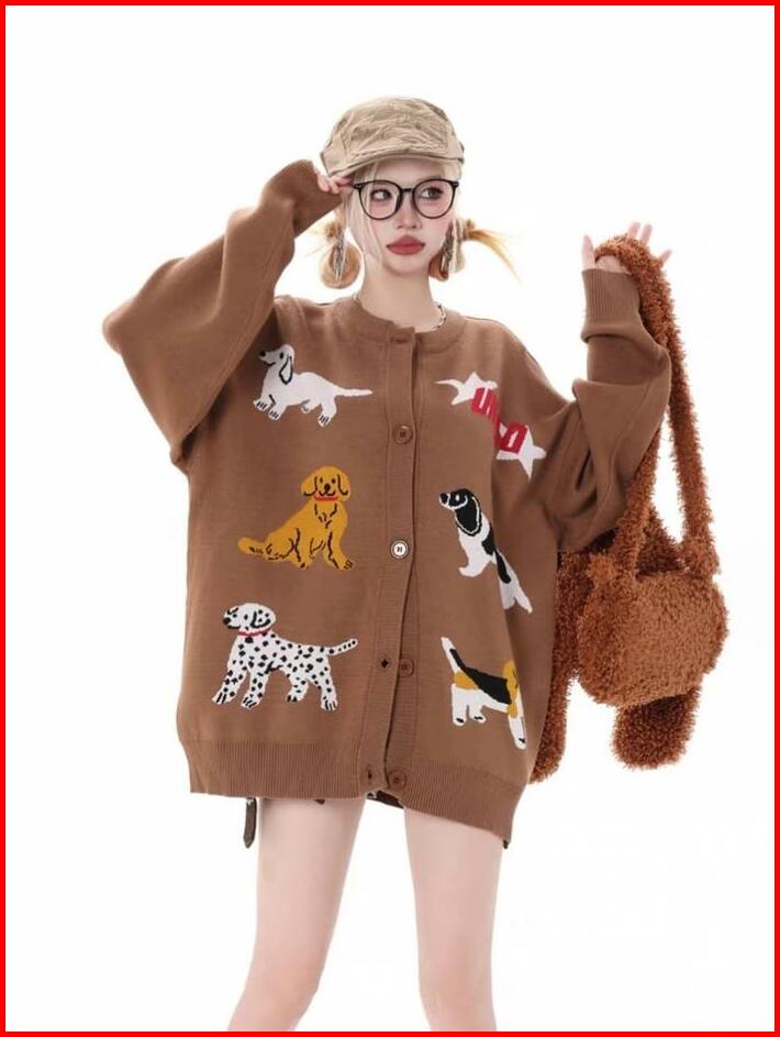 Sweater Animals Cardie Oversize Wanita Outfit Korean Look Cardy Kancing Kardigan Fleece Cardie Terbaru Atasan
