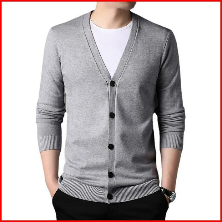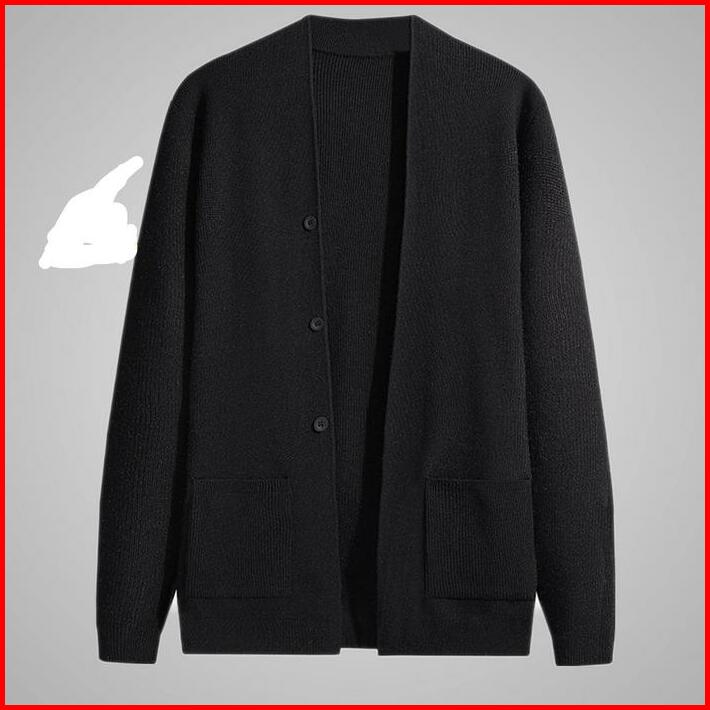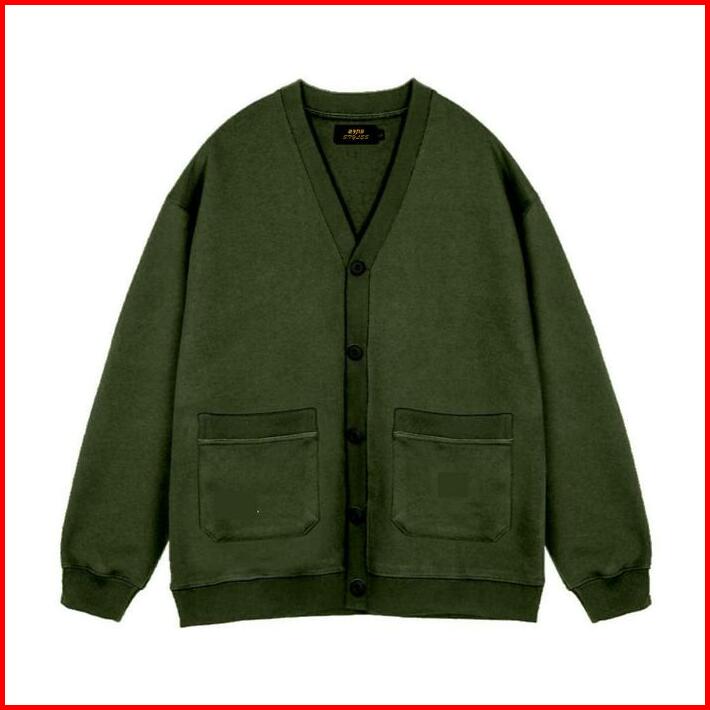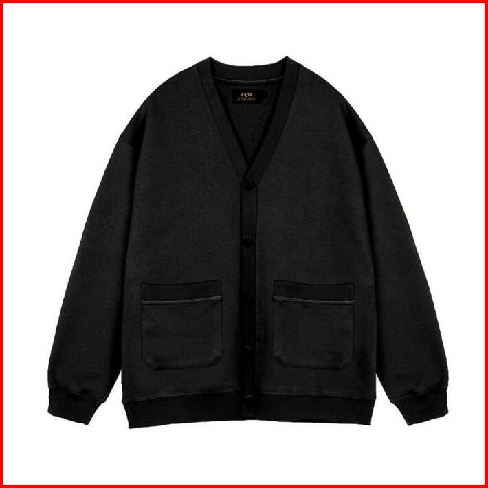 Sweater Cardigan Basic Unisex Tebal Knitwear Pria Santai Panjang Hitam Oversize Cardigan Sad Kain Fleece Regular Knit Cr