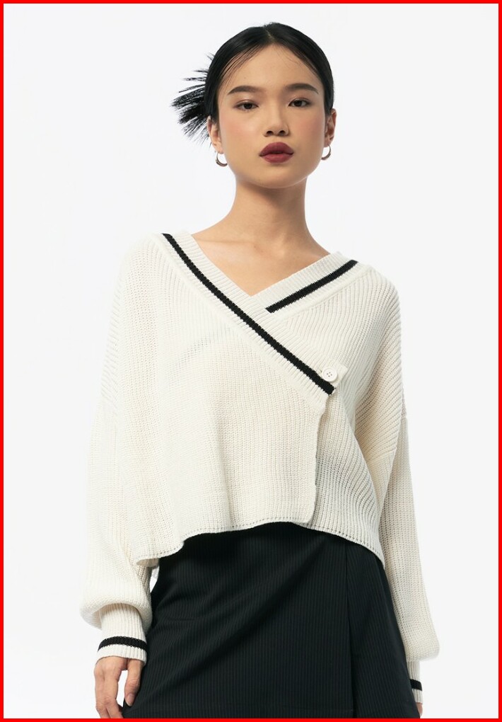 Colorbox Overlapped Long Sleeve Cardigan I-swgfov124f024 Off White