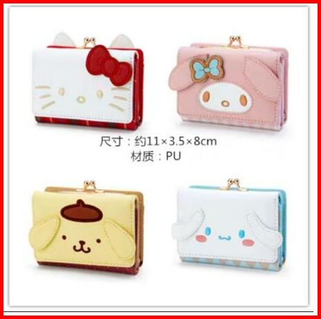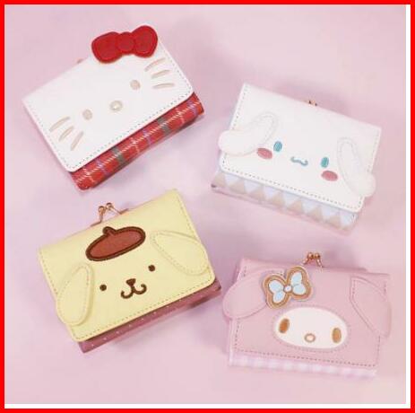 Dompet Lipat Wanita Sanrio Face Hello Kitty My Melody Kuromi Pompompurin Cinnamoroll