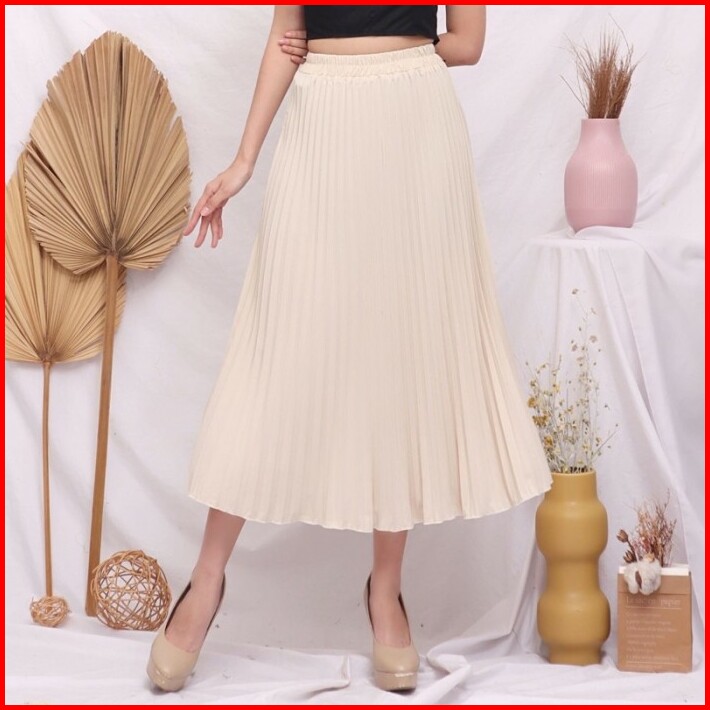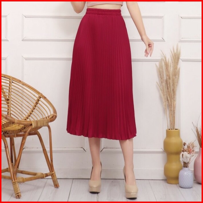 Rok Plisket Midi Rok Plisket Tanggung 7 8 Premium