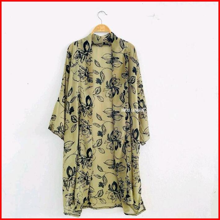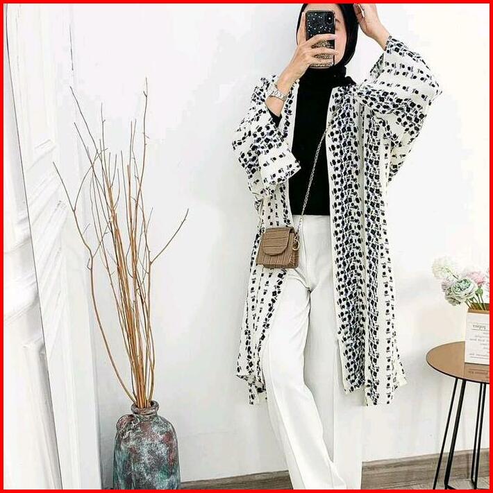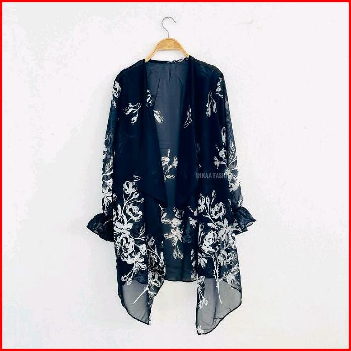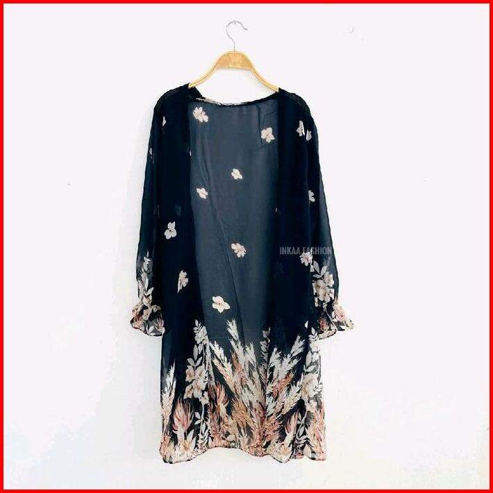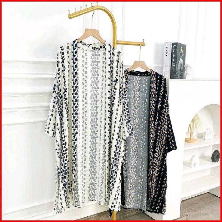 Long Outer Wanita Arumi Panjang Motif Bunga Muslim Cardigan Lebaran Korean Style Cantik Ceruty Kardigan Oversize