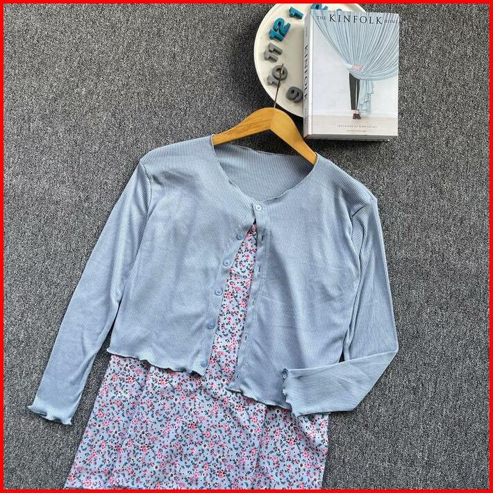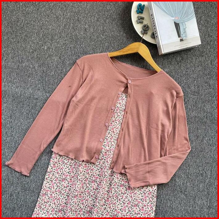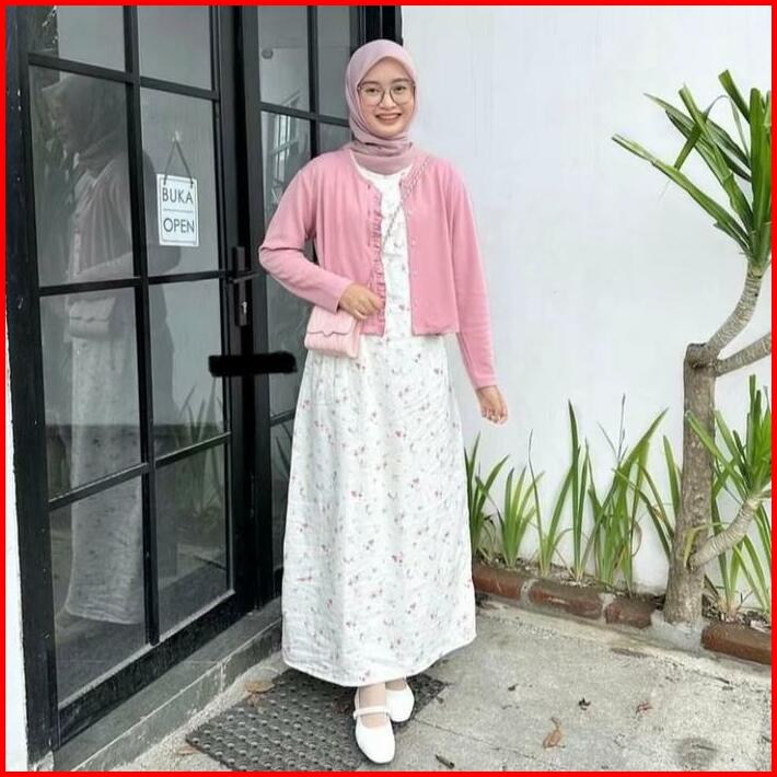 Setelan Oneset Yubi Overall Dress Cardigan Crop Lengan Panjang Oneset 2in1 Yubi Dress Motif Bunga Dan Cardigan Crop Musl