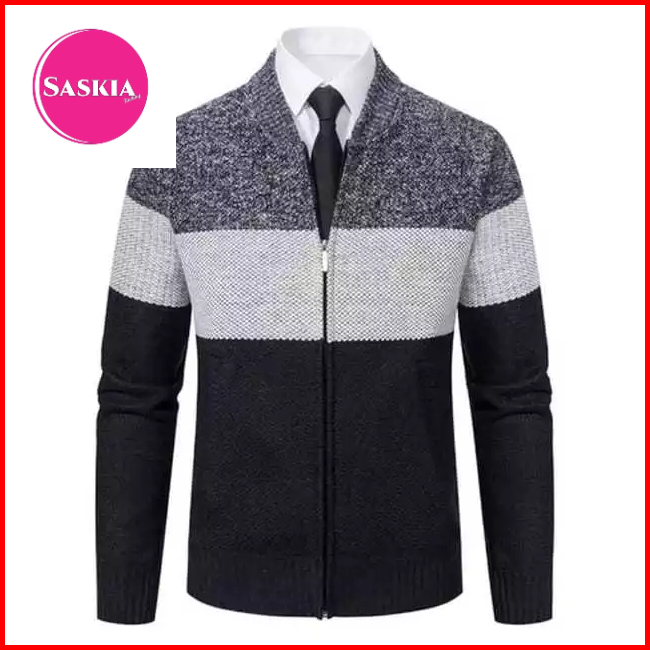 Sweater Resleting Bisbol Twes Nevi Nevi3warna Sweterpria Rajutpria Jaketpria