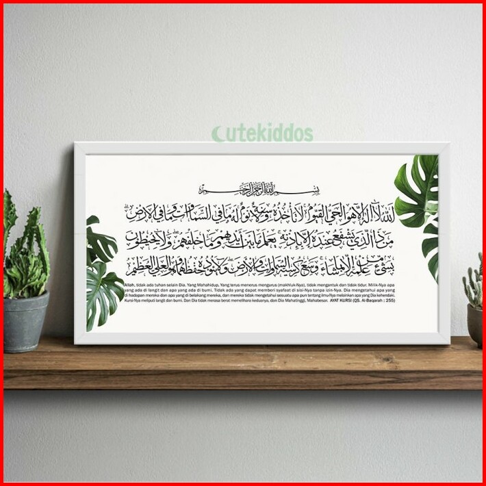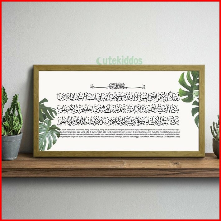 Hiasan Dinding Kaligrafi Ayat Kursi Rumah Islami Motif Daun Monstera
