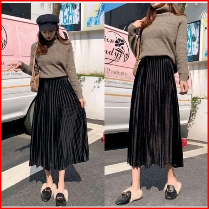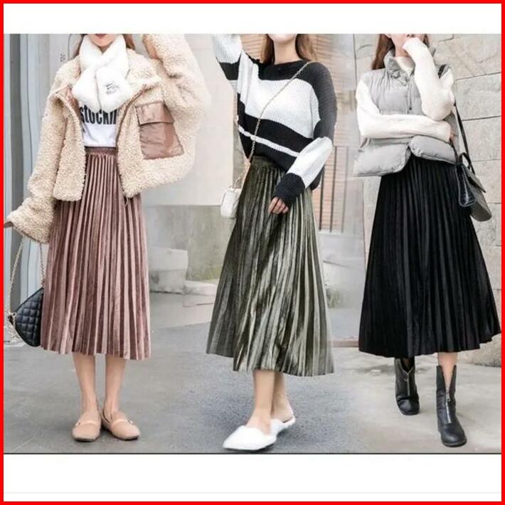 Rok Plisket Bludru Pendek 7 8 Premium
