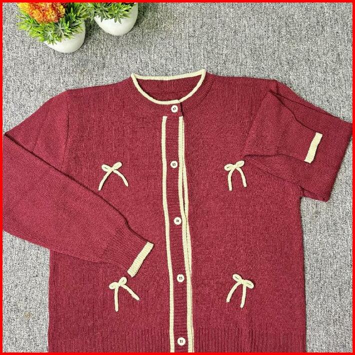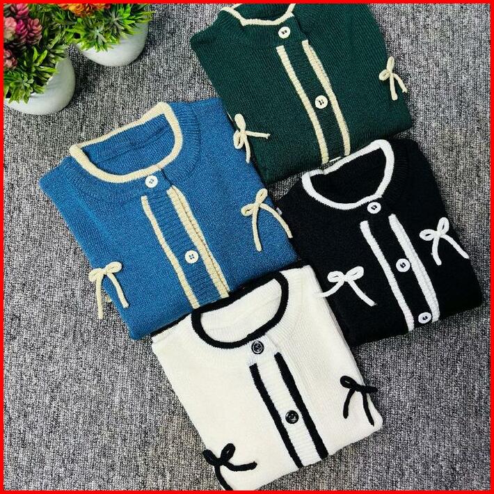 Keiko Cardigan Rajut-cardigan Pita Couple Wanita Atasan Fashion Knitwear Baju