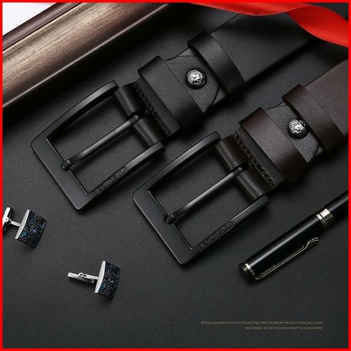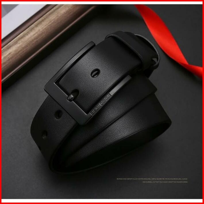 Bison Denim Gesper Ikat Pinggang Pria Kulit Sapi Asli Top Layer N71615 Black Stainless