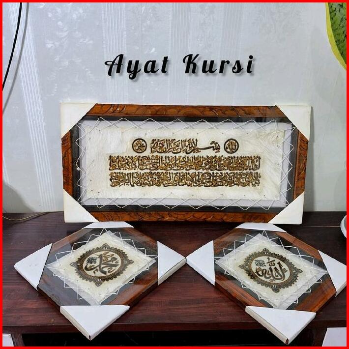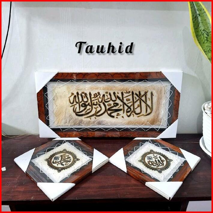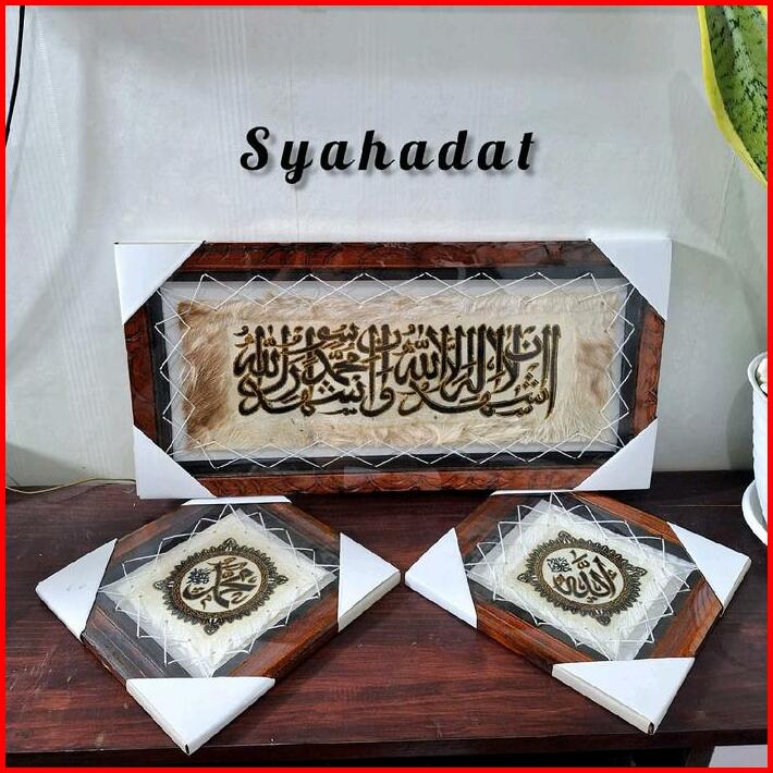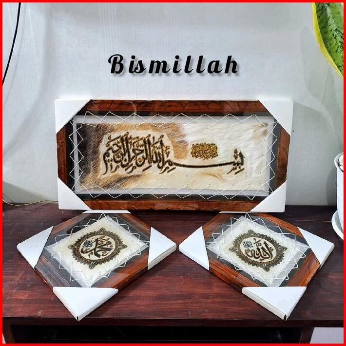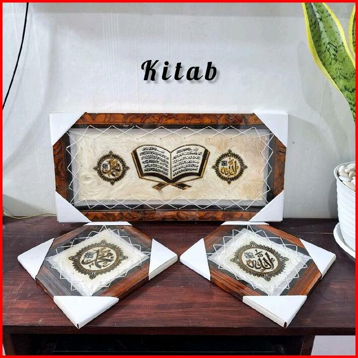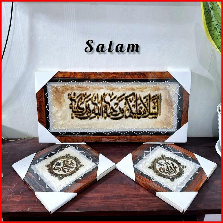 Kaligrafi Hiasan Dinding Rumah 1 Set Isi 3 Pcs 1kg Bahan Kulit Kambing Asli Berkualitas Bingkai Kayu Depan Plastik