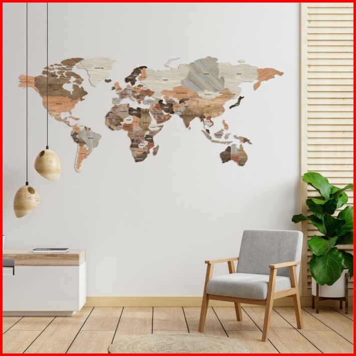 Hiasan Dinding Walldecor Peta Dunia Tema Kayu Shabby Monocrom Uk 1 5m