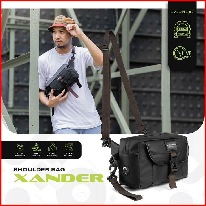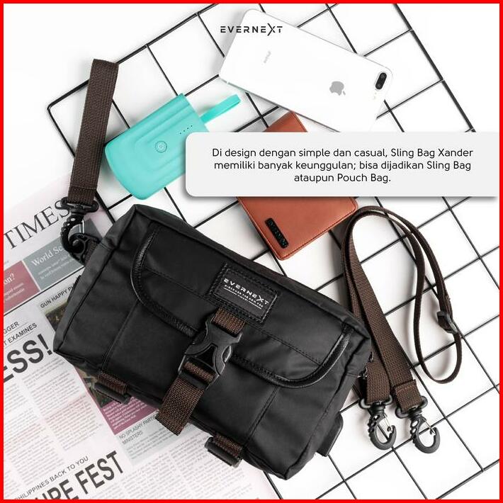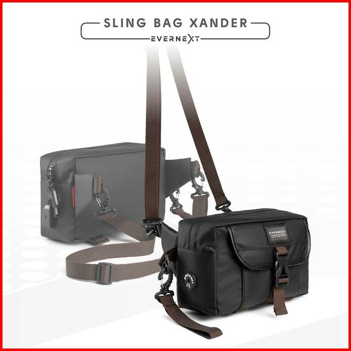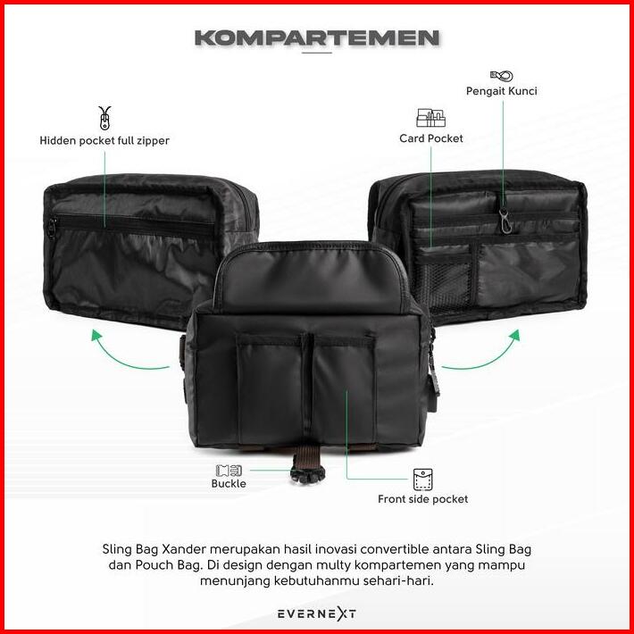 Evernext Tas Selempang Pria Anti Air Sling Bag Xander Waterproof Pouch Bag Cowok Anti Air Waist Bag Tas Pinggang Hitam P