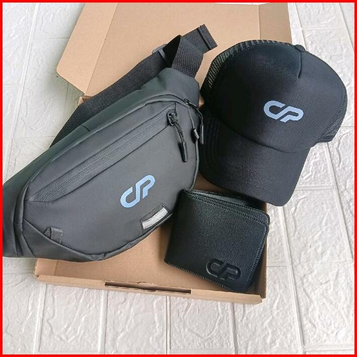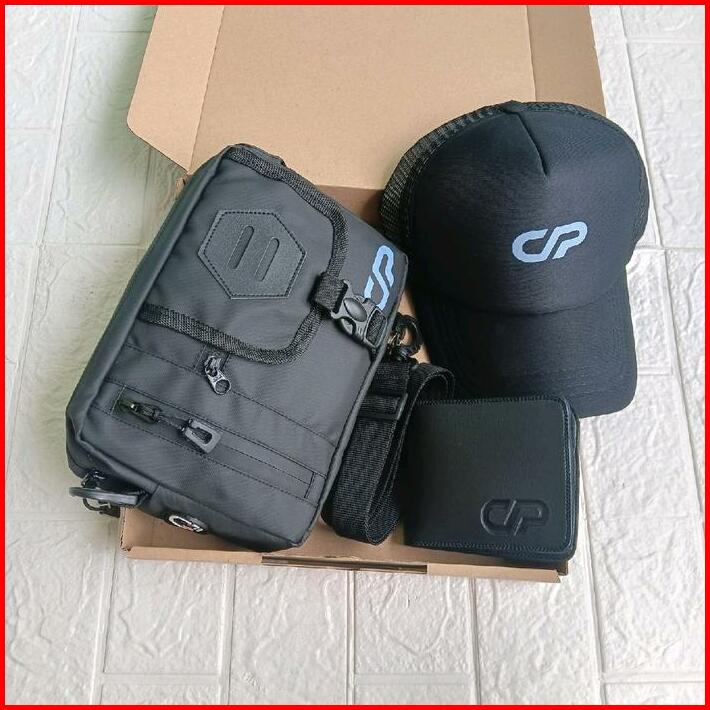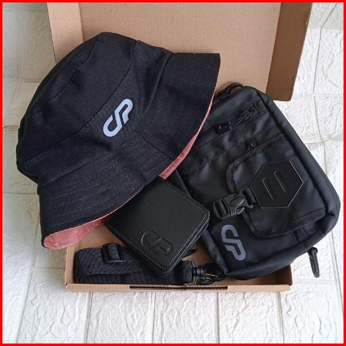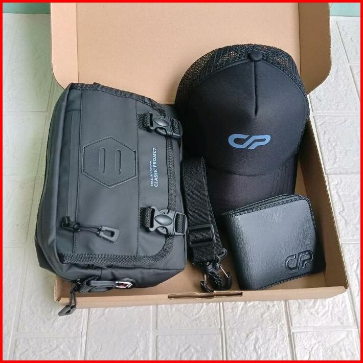 Paket Hampers Combo Hemat Tas Selempang Topi Dompet Ekslusif Classic Project Include Box Kado Pria Waistbag Minimalis To
