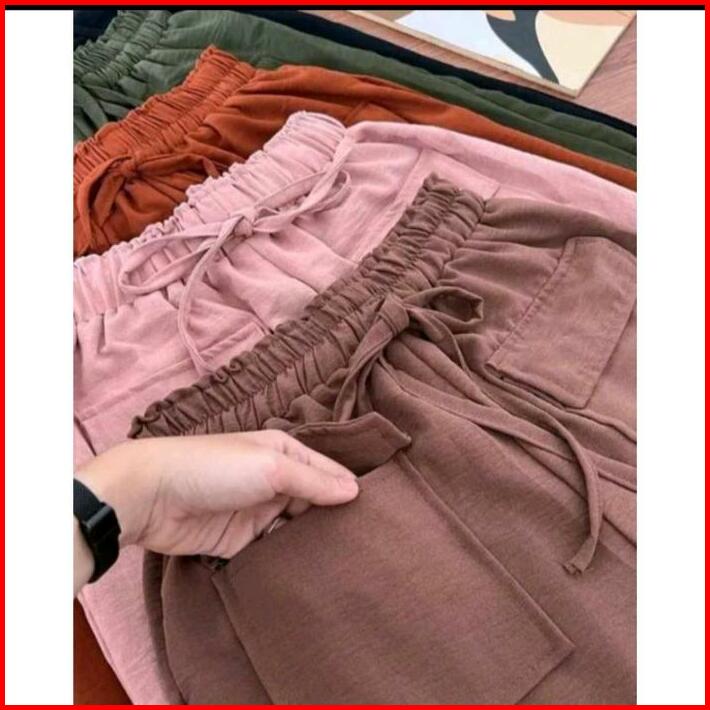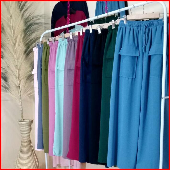 Celana Kulot Kantong Depan Celana Cringkel Air Flow Celana Kulot Celana Cewek Karet Crinkle