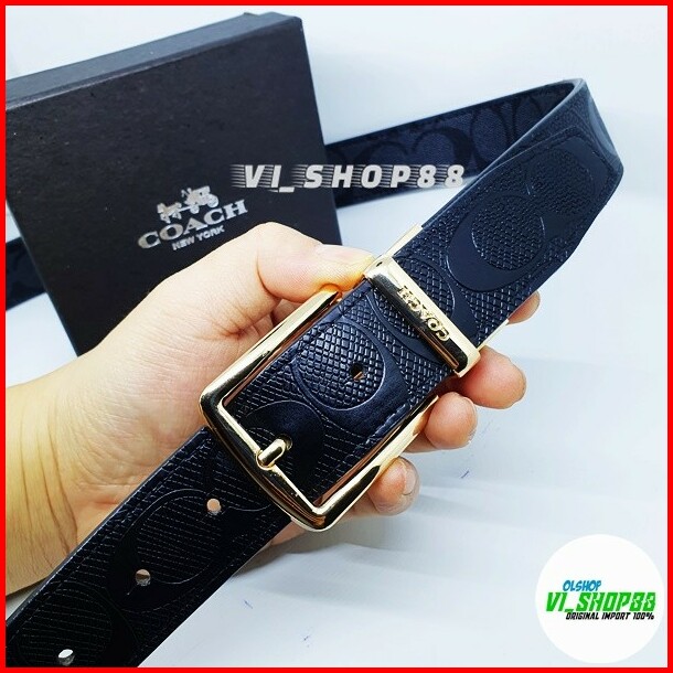 Coach Ikat Pinggang Pria Reversible Gesper Pria Pria Kulit Asli