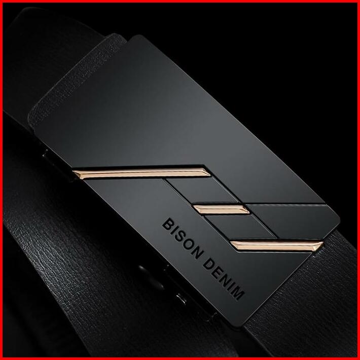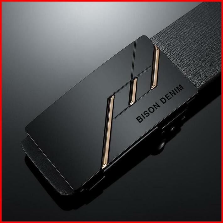 Bison Denim Gesper Stainless Ikat Pinggang Pria Kulit Sapi Asli N71581 Black