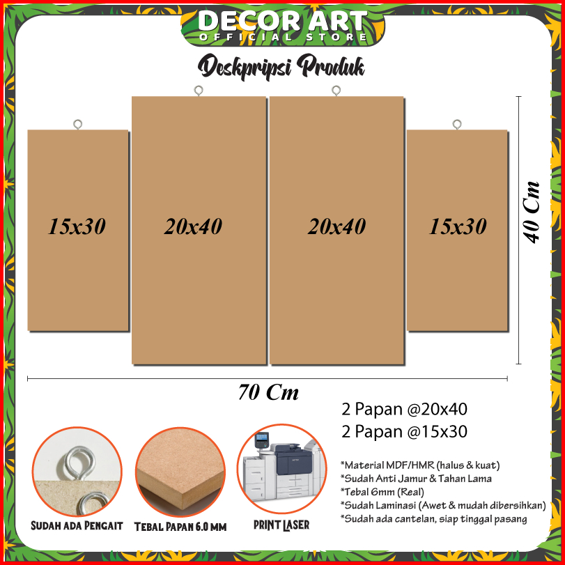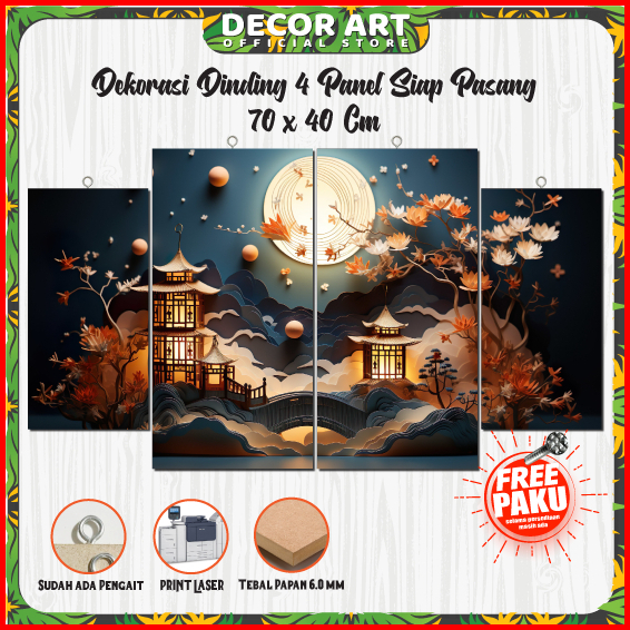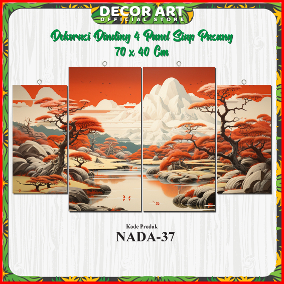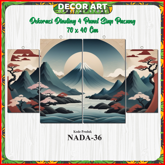 Decorart 70x40 Cm - Hiasan Dinding Set 4 Panel Tema Pemandangan 3d Landscape Siap Pasang Kd Nada
