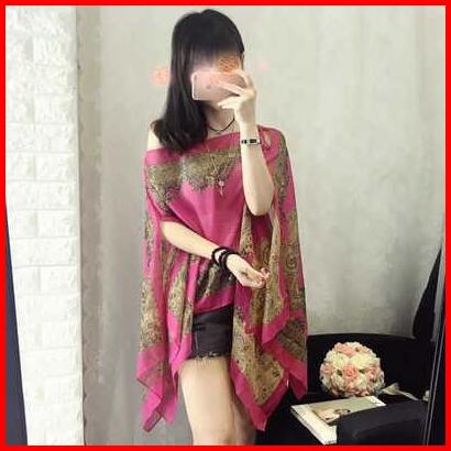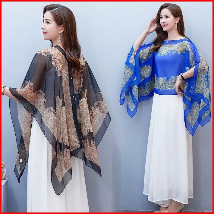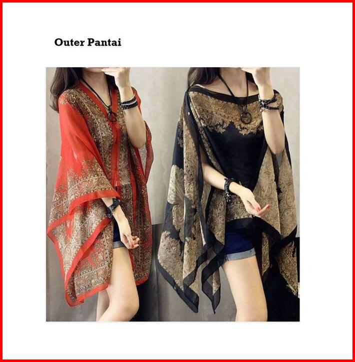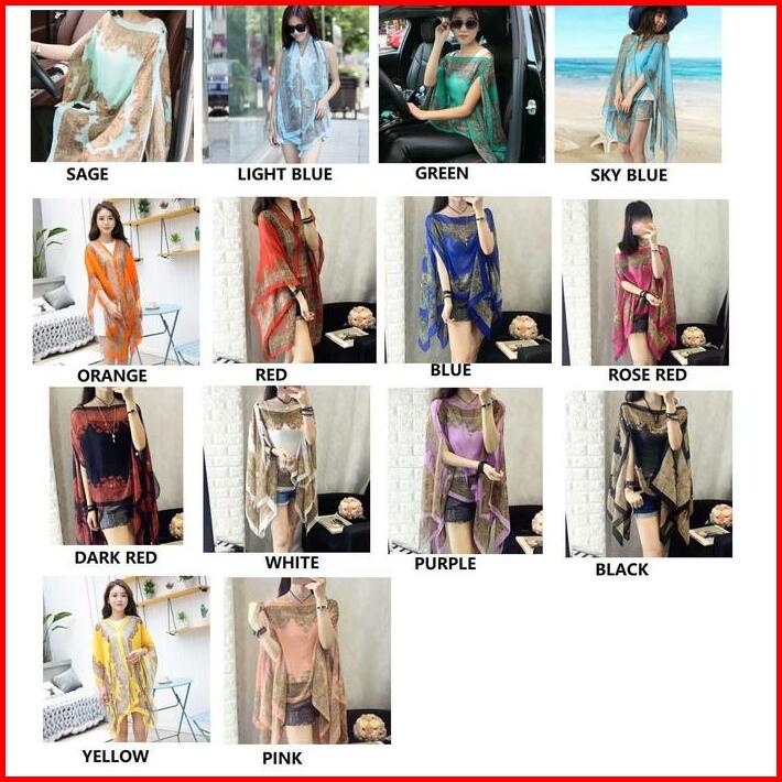 Outer Scarf Batik Chiffon Pantai Bahan Sifon Baju Luaran Bali Syal Sutra Shawl Wanita Silk Sarong Sarung Kain Printing M