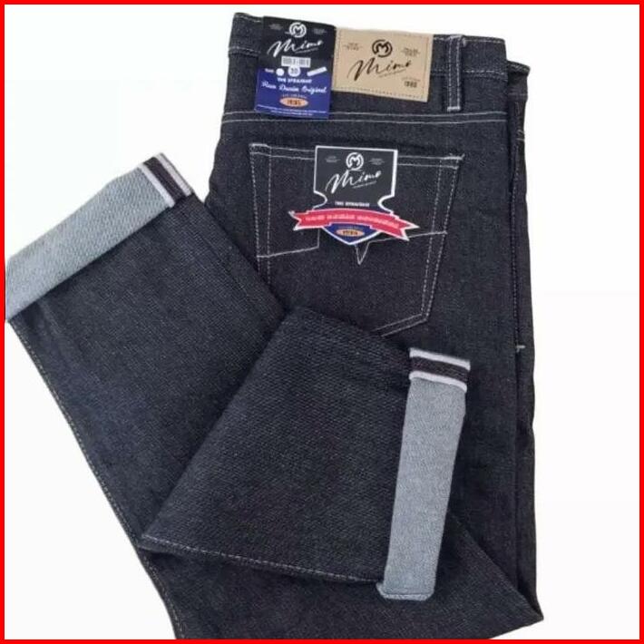 Celana Denim Selvedge Pria Jeans Panjang Black Indigo Slim Hitam Slimstraight Cowok Muda Slimfit Skinny Melar Stretch Fa
