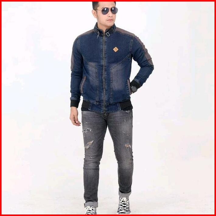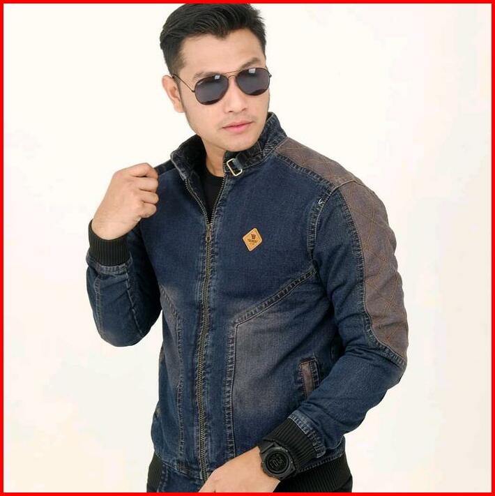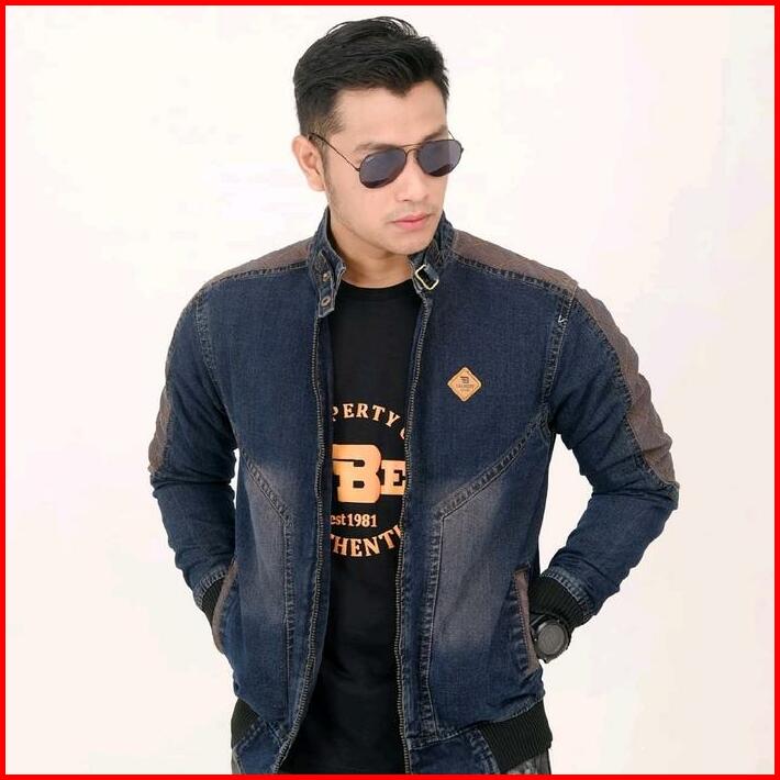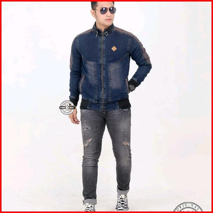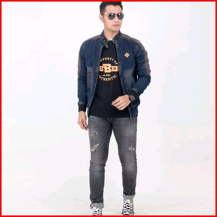 Jaket Jeans The Bery Bernaz Kerah Logo Slim Fit Cowok Premium Denim Lembut