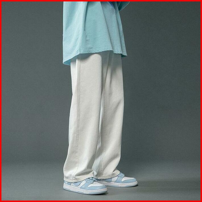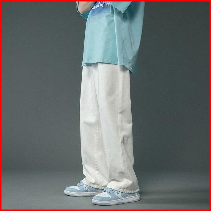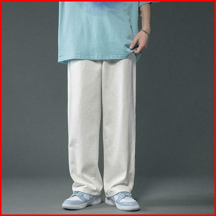 Celana Jeans Pria Korean Style Kulot Baggy Pants Oversize Celana Putih Gombrong Boyfriend Loose Pants Baggy Jeans Cowok