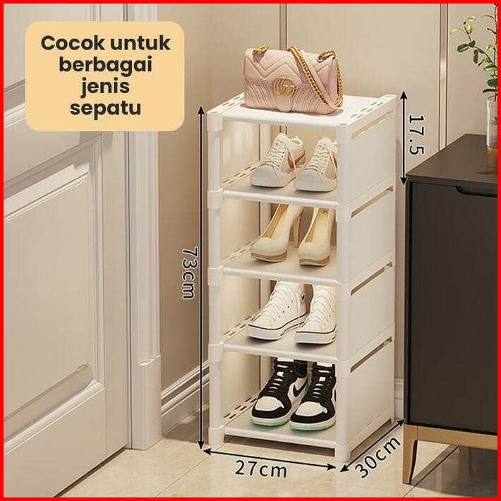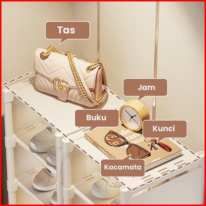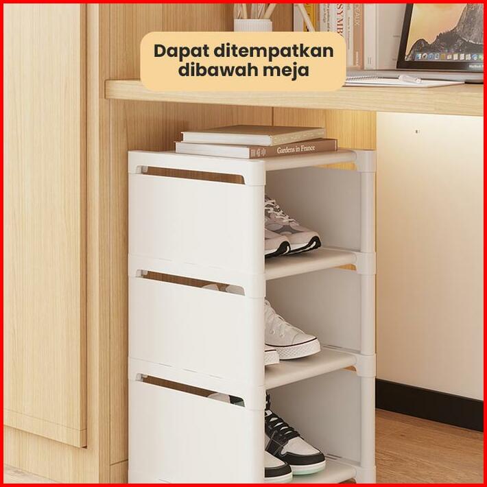 Halu Rak Sepatu 8 Susun Serbaguna Tempat Penyimpanan Sepatu Black Sandal Minimalis 4 Layer Hrs106
