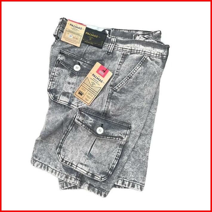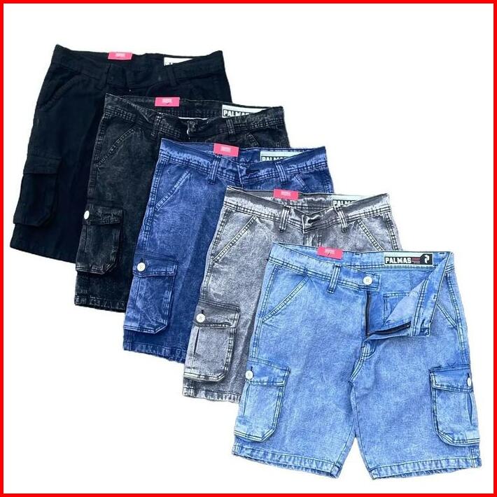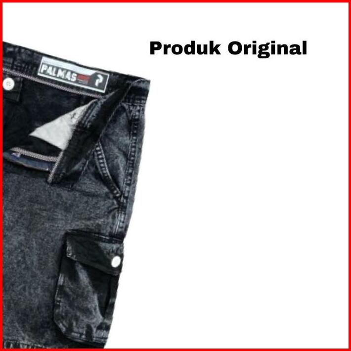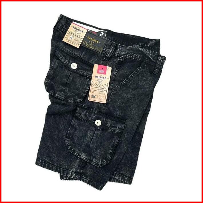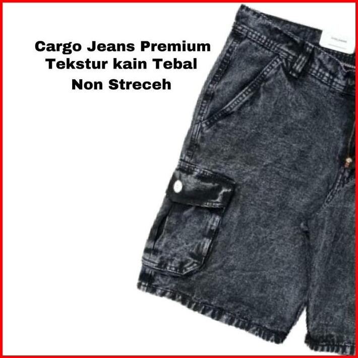 Celana Cargo Jeans Pendek Pria Katun Nyaman Distro Santai Denim Hitam Semi Panjang Standar Dewasa