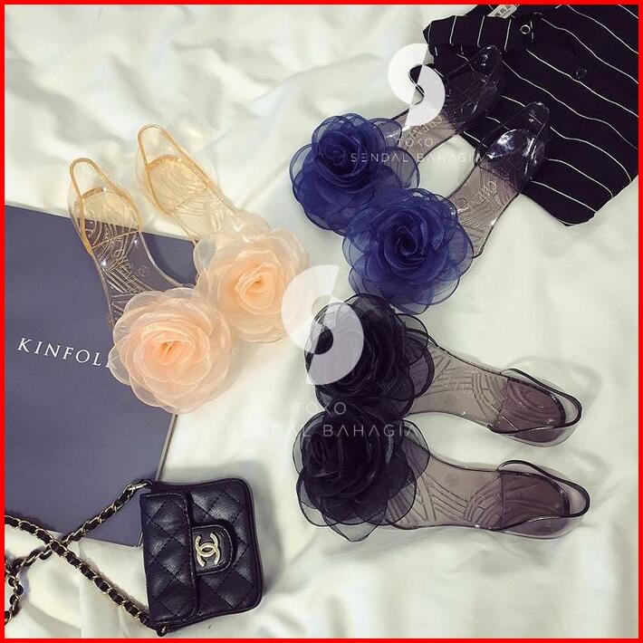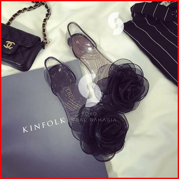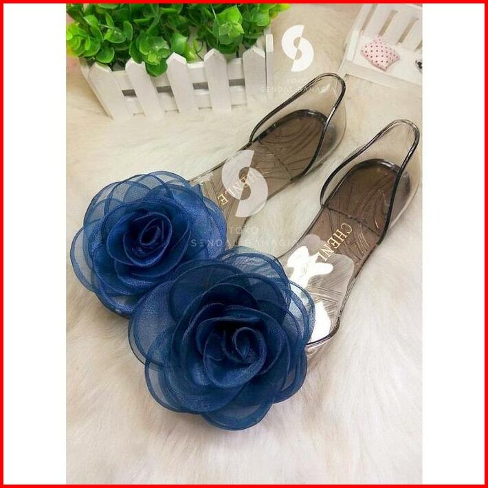 Sepatu Flat Jely Teplek Wanita Import Model Bunga Anti Slip Sendal Kaca Transparent Soles Cinderela 0018 Karet Shoes