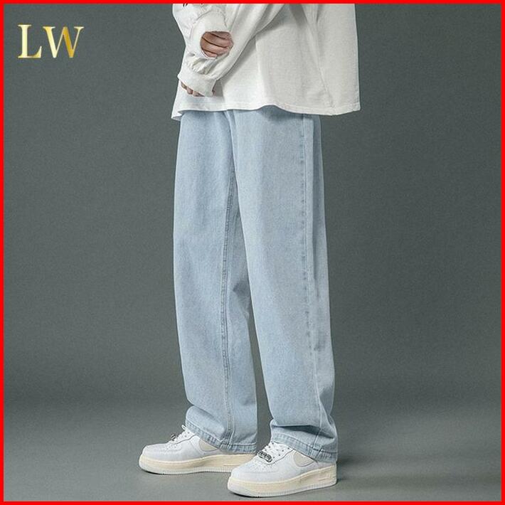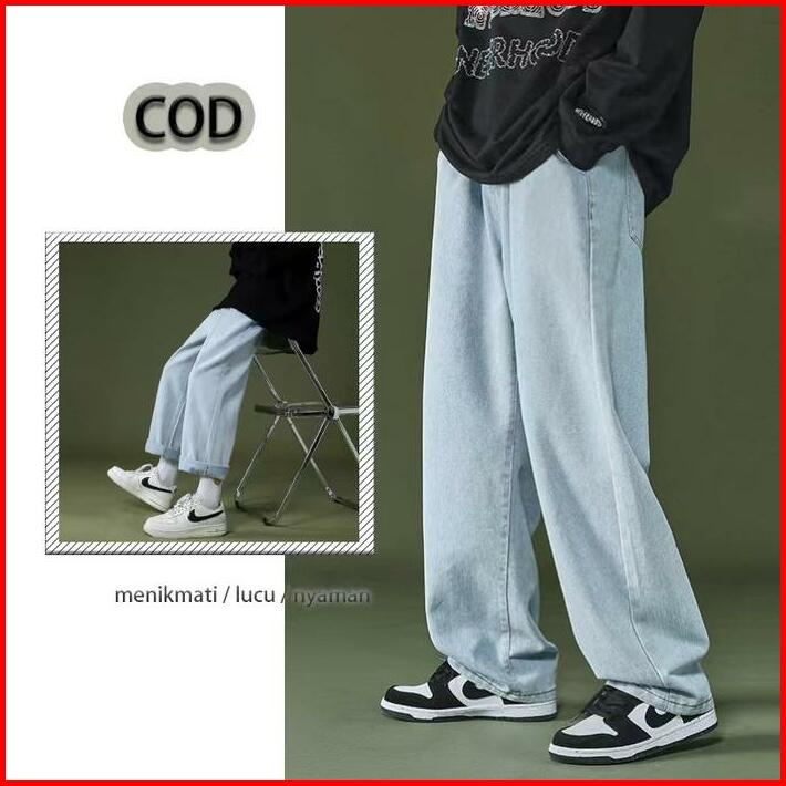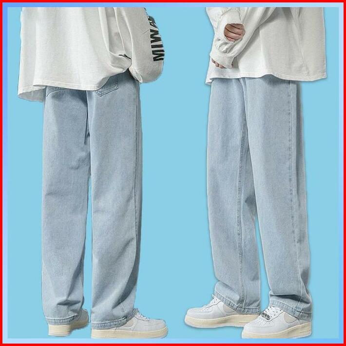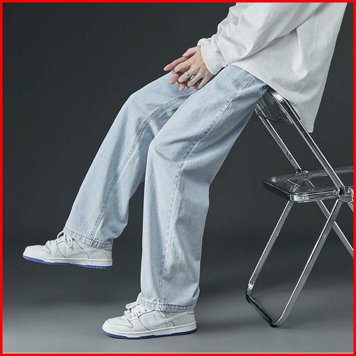 2024 Celana Jeans Pinggang Jeans Lurus Gaya Korea Kulot Jeans Korea Jumbo Panjang Out Remaja Biru Longgar Pria Jeans Den