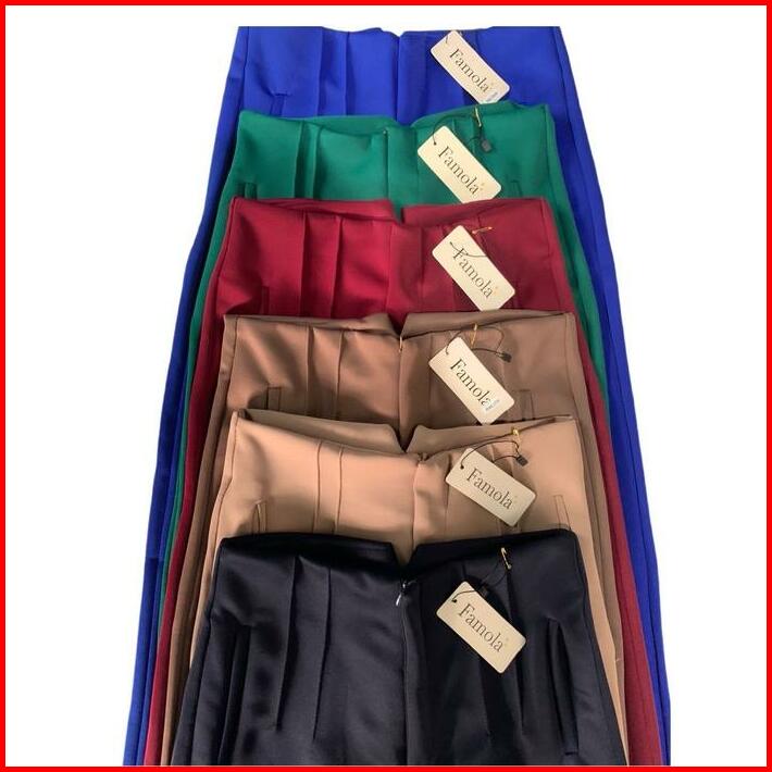 Famola-baggy Pants Highwaist Celana Kerja Slim Fit Scuba Premium Zipper Saku Paspol