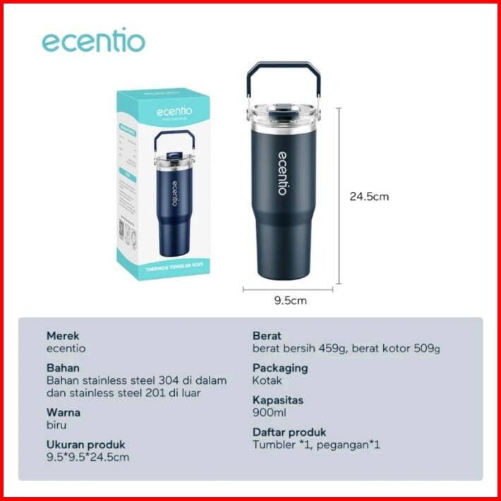 Ecentio Tumbler Stainless Tahan Dingin 24 Jam Bpa Free Termos Kopi 900 Ml