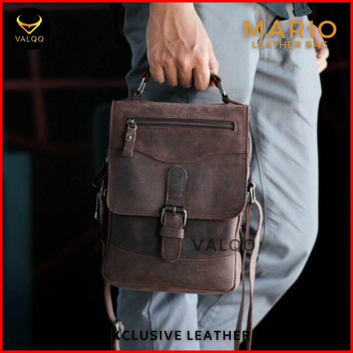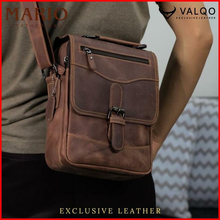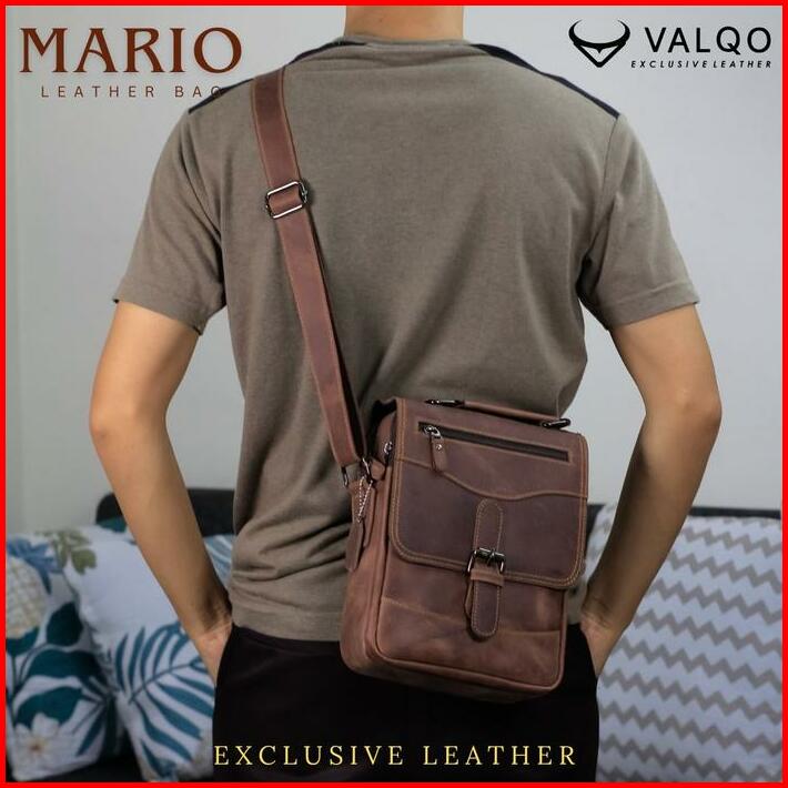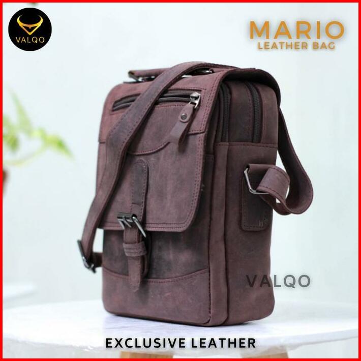 Valqo Mario Tas Kulit Sapi Tas Pria Tas Selempang Slingbag Pria Laki Cowok Hitam