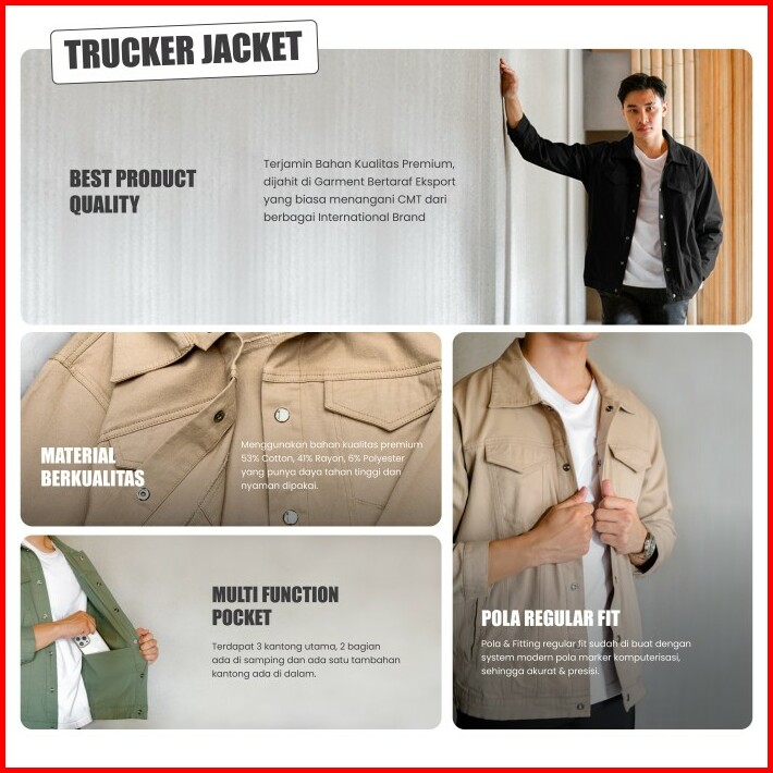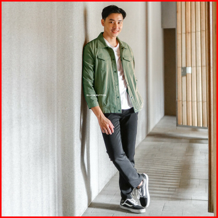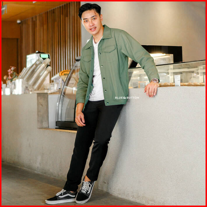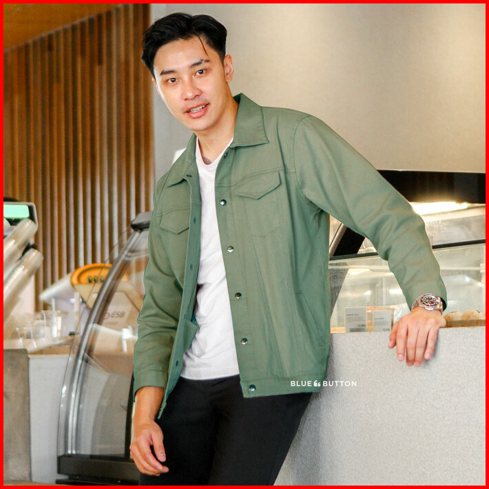 Bluebutton Trucker Canvas Outer Jacket Pria Reguler Fit Premium Sage