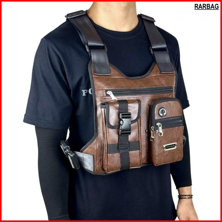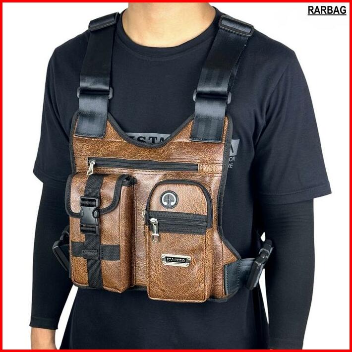 Tas Dada Chest Bag Polo Amstar Bahan Kulit Pu Leather Best Quality Waterproof Chest Rig Bag Tas Selempang Pria Tas Rompi